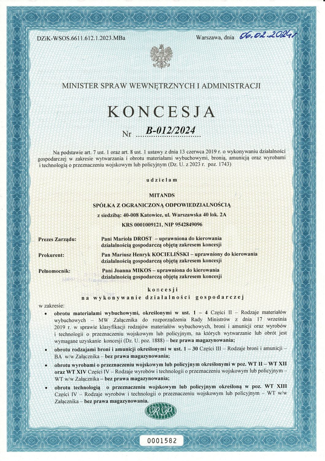 NCAGE Code 9BPJH, Koncesja MSWiA B-012/2024